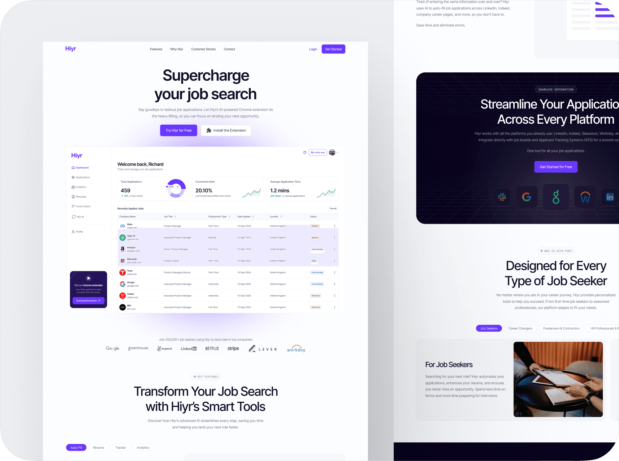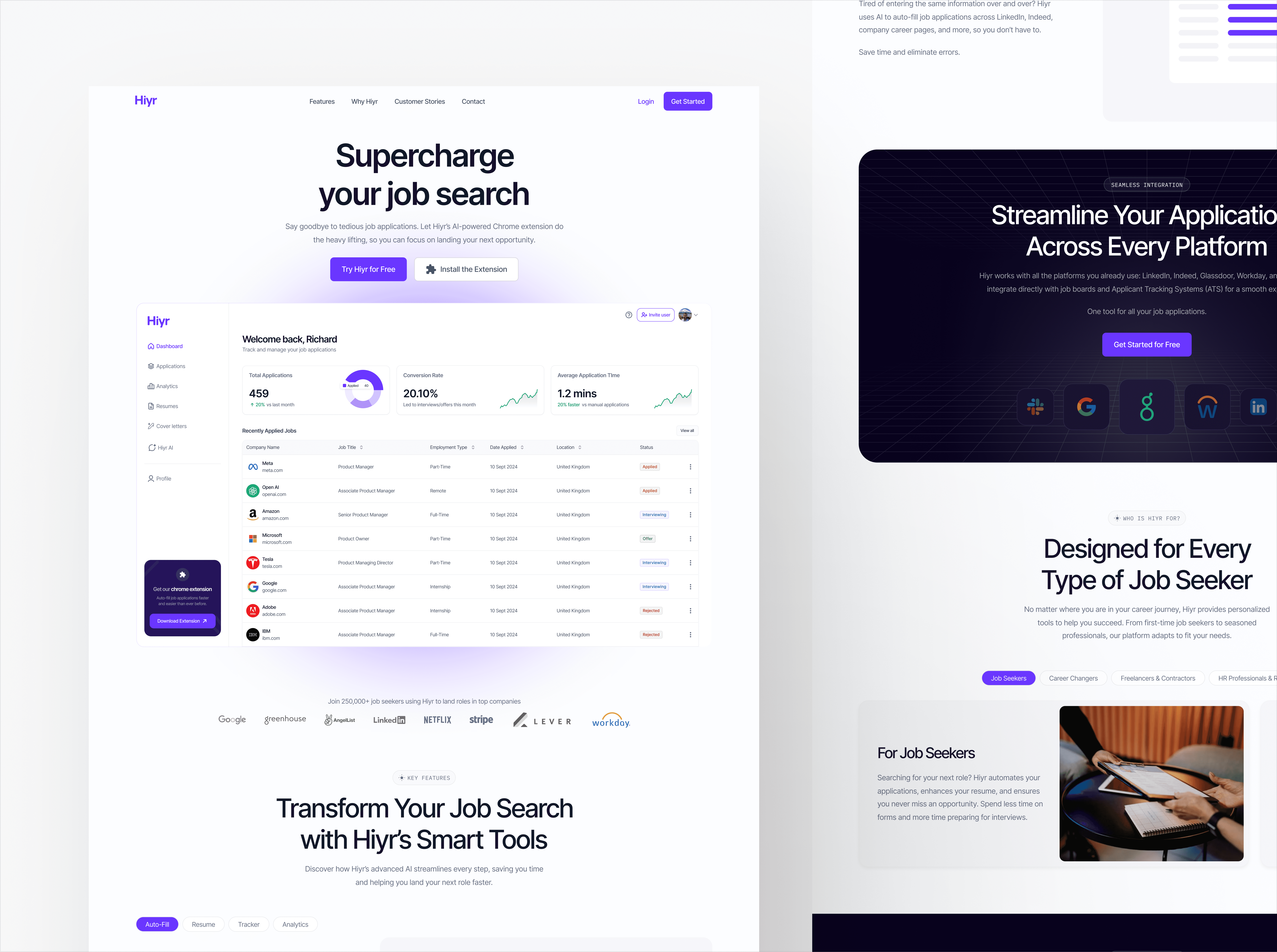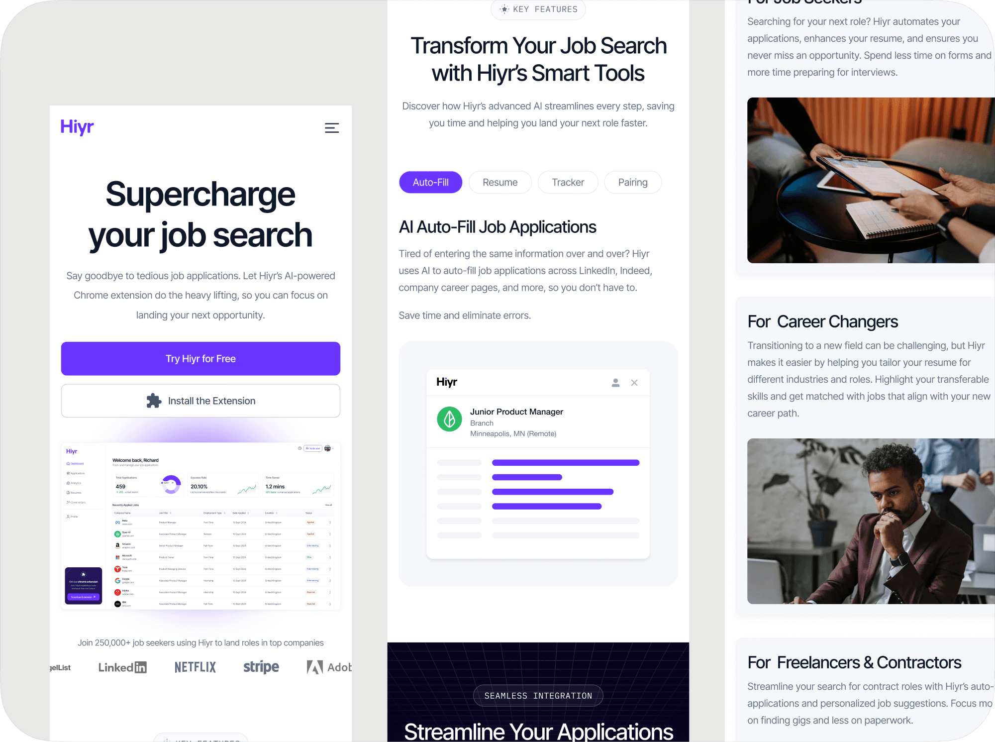 Say goodbye to tedious job applications. Let Hiyr’s AI-powered Chrome extension do the heavy lifting, so you can focus on landing your next opportunity.